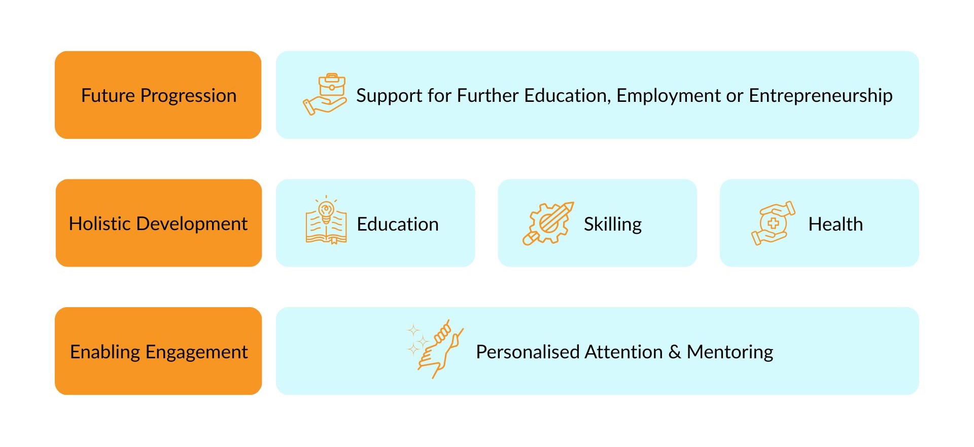 We walk with our students through the transition to adulthood—offering support for further education, employment or entrepreneurship: